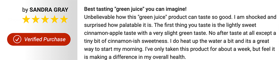 Registered Dietitian-designed VG-6 is packed with superfoods proven to trigger your natural detox process, stimulate energy production, reduce harmful stress, and promote gut health…especially when you don’t have the time to consume plate-loads of veggies every day.
